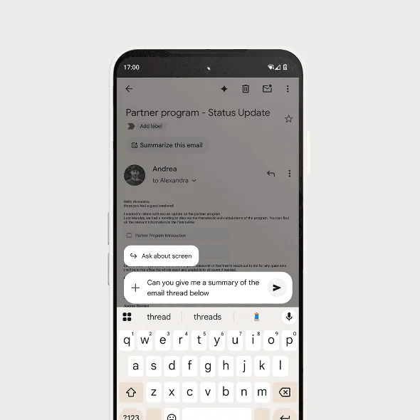 Say “Hey Google” to ask Gemini for help with what’s on your phone screen