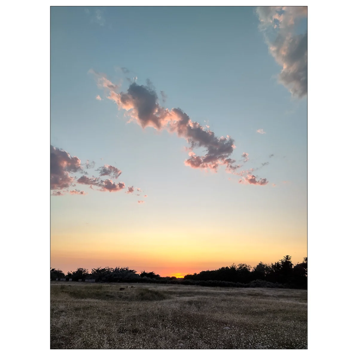 “The range of colors and detail in this photograph really spoke to me. The image is split into three parts. We have the rolling field of green on the bottom third of the image. On top, the blue sky and clouds open up the image, giving a sense of space and freedom. The cherry on top is the horizon and the setting sun cutting through the middle, providing a beautiful contrast. The sunset reflecting on the bits of clouds makes the photograph almost painting-like. Overall, this is a great example of the right framing, light and color balance.”