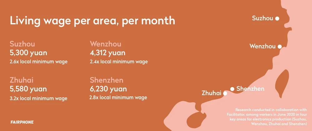 With the ongoing Covid-19 pandemic, research done in collaboration with Facilitator, a Chinese NGO, found that a living wage is more important than ever, as most workers experience a loss of income, mainly due to less overtime work and lower employer revenue. During the peak of the Covid crisis in China, Fairphone has also paid the living wage bonus to some factory workers in February and March 2020 who were unable to go to the factory due to government travel restrictions – helping to support them during a challenging time.