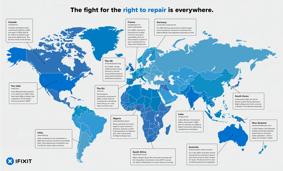 And news stories represent only a snippet of the global groundswell of support for the Right to Repair movement. That sentiment is creating concrete change all around the world.
